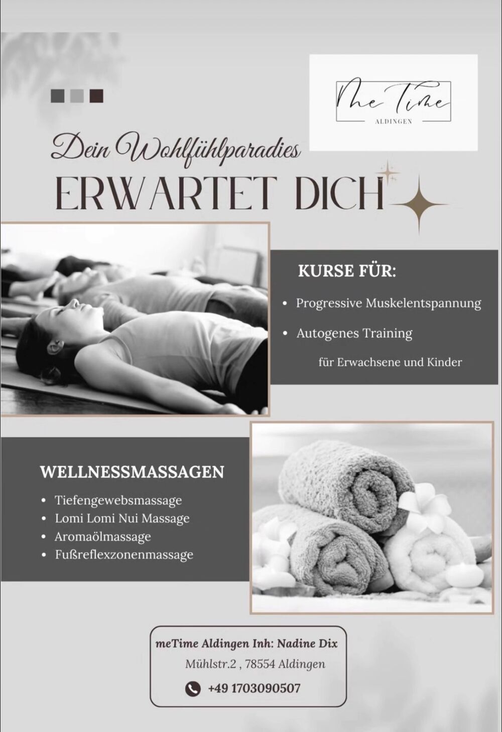 In meinen Kursen für Autogenes Training, Progressive Muskelentspannung, Stressmanagement, Meditation und auch bei verschiedensten Wellnessmassagen können Sie in kurzer Zeit Ihren Alltagsstress loslassen und sich wirksam erholen. Es ist heute wichtiger denn je Leistungsstark und Gesund zu bleiben. Häufiges Erleben von Stress und Leistungsdruck kann zu Gesundheitsstörungen führen.