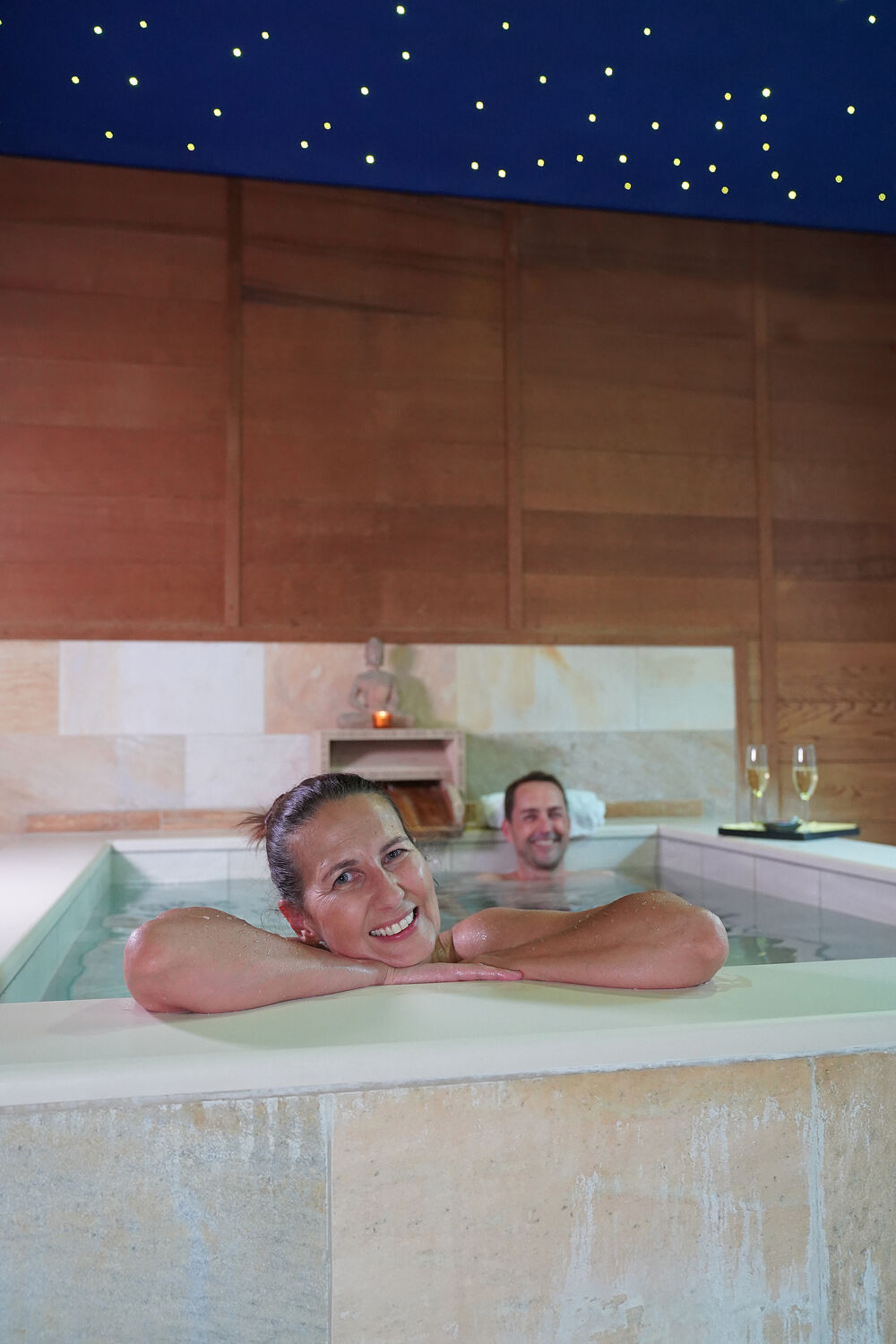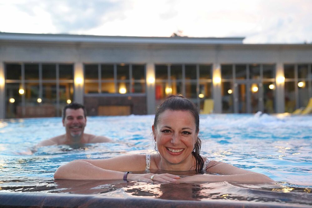 Das Mineral-Thermalwasser ist je nach Becken zwischen 29 und 36 Grad Celsius warm und hat einen Mineraliengehalt von über 4.000 Milligramm pro Liter. Das Wasser besitzt eine der höchsten Kohlensäurekonzentrationen in Europa. Die feinperlige Kohlensäure, die durch die Haut unmittelbar auf Blutgefäße und Nerven wirkt, entspannt, regeneriert und regt die Durchblutung an.