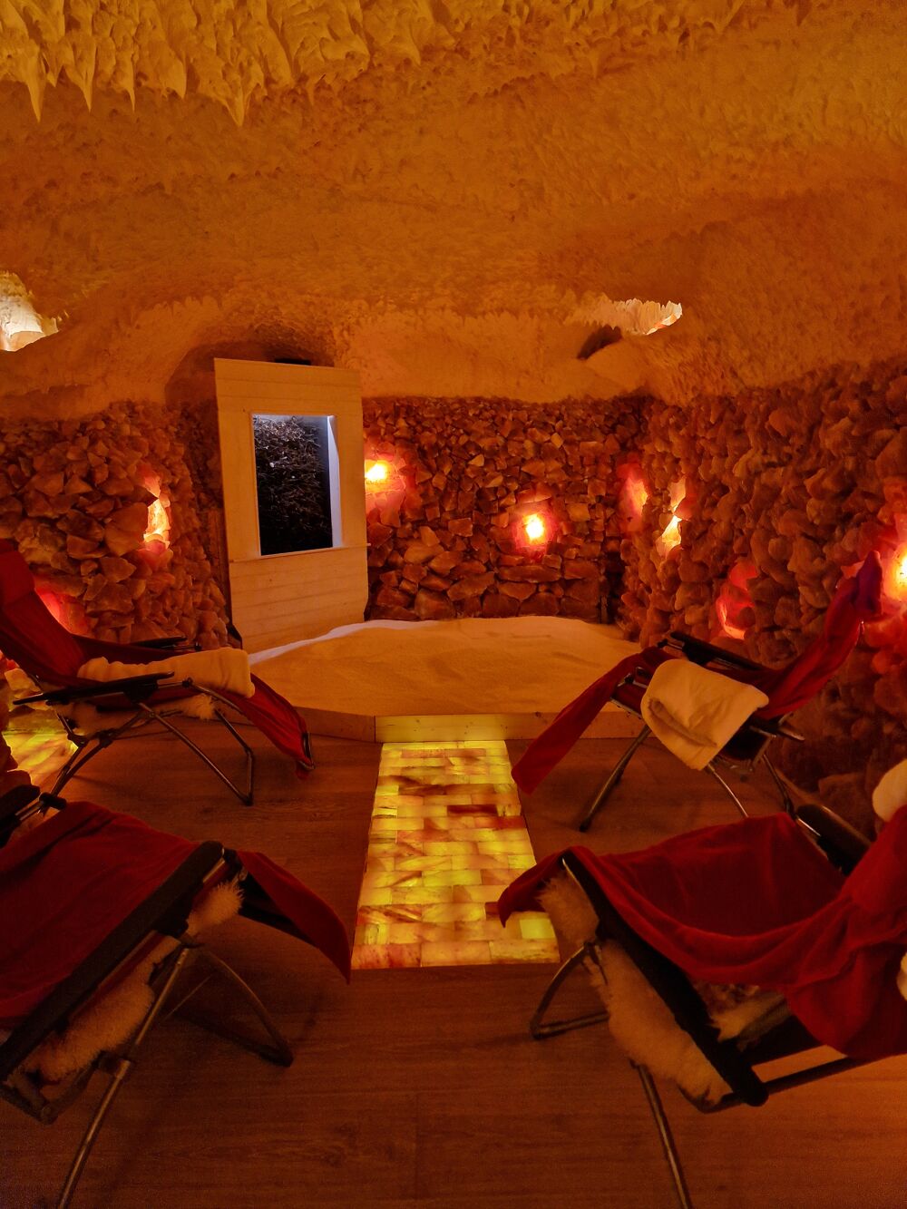 Ihre Sitzung in der Salzgrotte dauert 45 Minuten und beginnt zu jeder vollen Stunde.