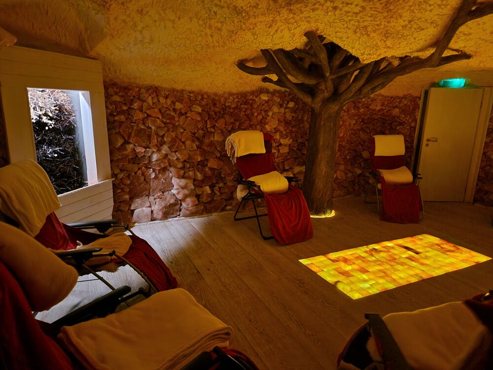 Seit vielen Jahrhunderten ist die wohltuende Wirkweise naturbelassener Salze bekannt. Wertvolle Spurenelemente werden über die Haut und durch die Atmung vom Körper aufgenommen. Die Erlebnisbereiche Salzgrotte und Solevernebelung sind die perfekte Kombination für maximale Entspannung und Wellness für Körper und Seele.