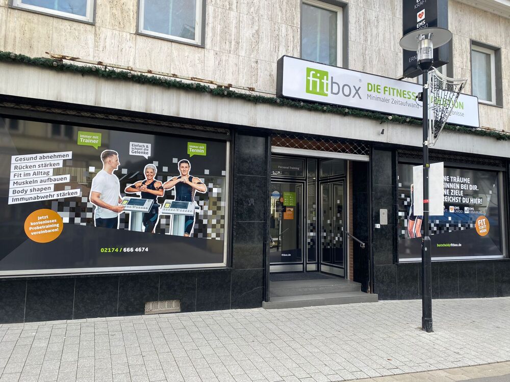 Das Kraft- und Cardio-EMS-Studio fitbox Burscheid liegt im Herzen von Burscheid, 130 Meter vom Marktplatz entfernt. Wir bieten hochintensives EMS-Training mit modernster Technologie an in einer angenehmen, motivierenden Atmosphäre an. Unser hochintensives und konzentriertes Training, hilft dir deine Fitnessziele beim minimalen Zeitaufwand zu erreichen. Dabei ist es egal, ob du gesund und nachhaltig abnehmen, Muskeln aufbauen, deinen Rücken stärken oder deine Fitness im Alltag erhöhen möchtest. In der fitbox Burscheid bieten wir für deine Ziele individuelle Lösungen an, damit du schon nach kurzer Zeit erste Erfolge spürst => EMS KRAFT/ EMS CARDIO