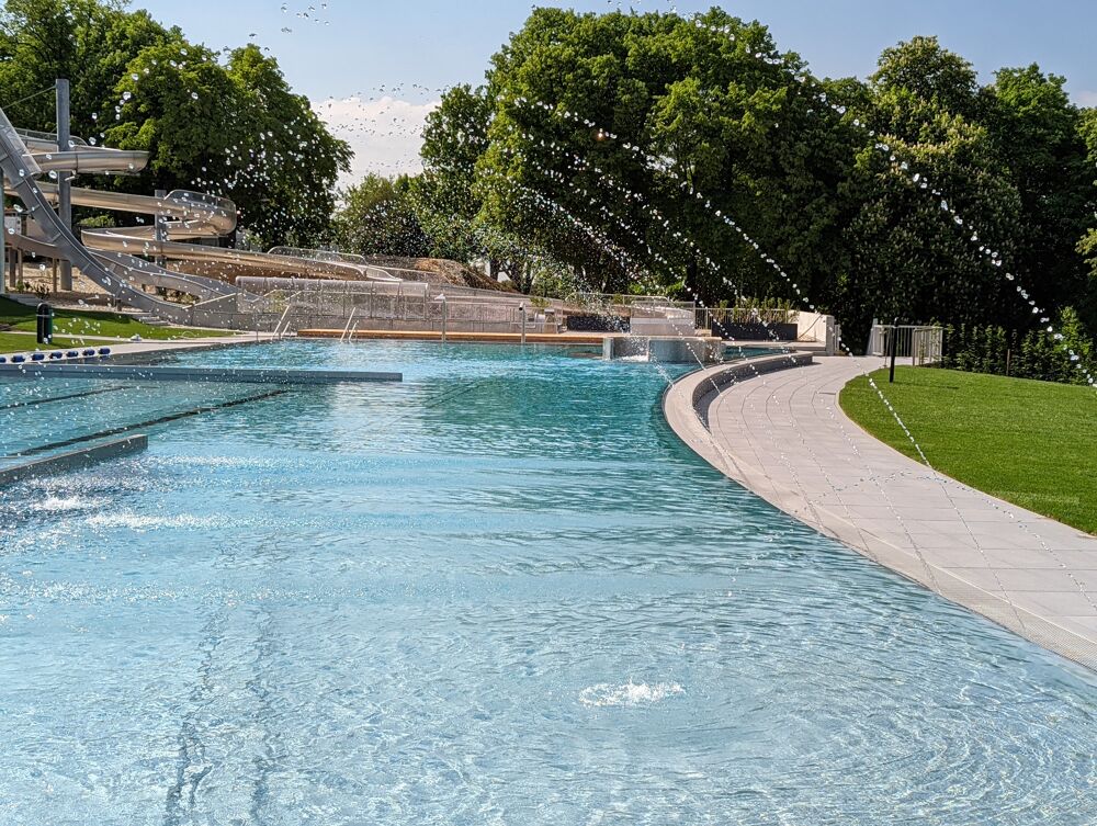 An der Hauptliegewiese finden Sie das große 50 m Sportbecken mit seinen acht Bahnen.