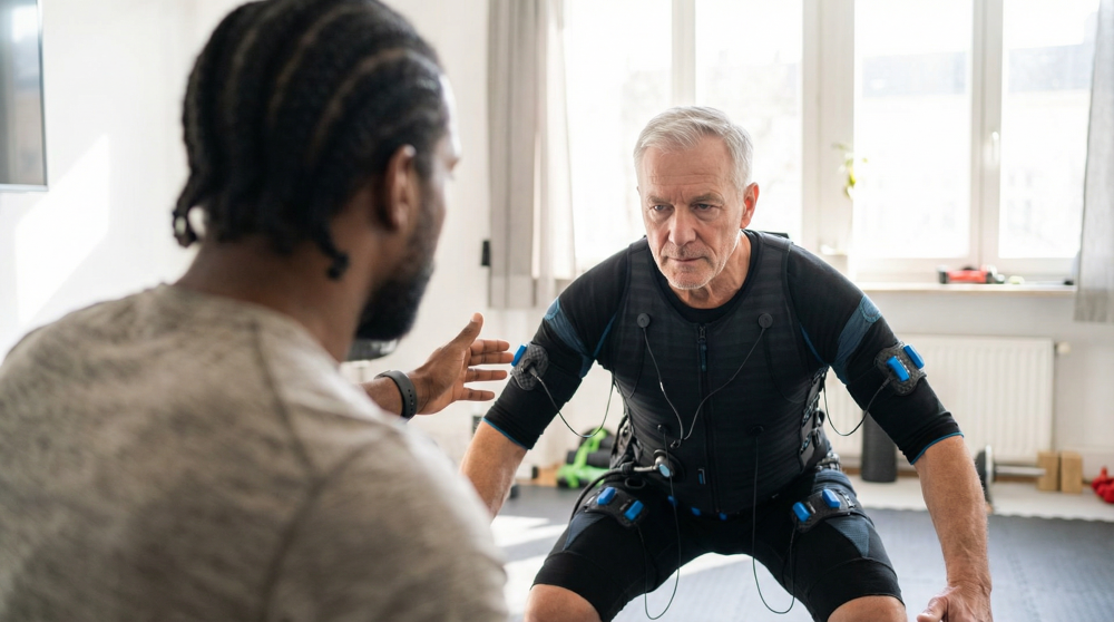 Unser Schwerpunkt liegt auf EMS-Training (Elektromyostimulation), das ein zeitsparendes und zugleich sehr intensives Ganzkörpertraining ermöglicht – ideal für Muskelaufbau, Körperstraffung und Rückenstärkung.