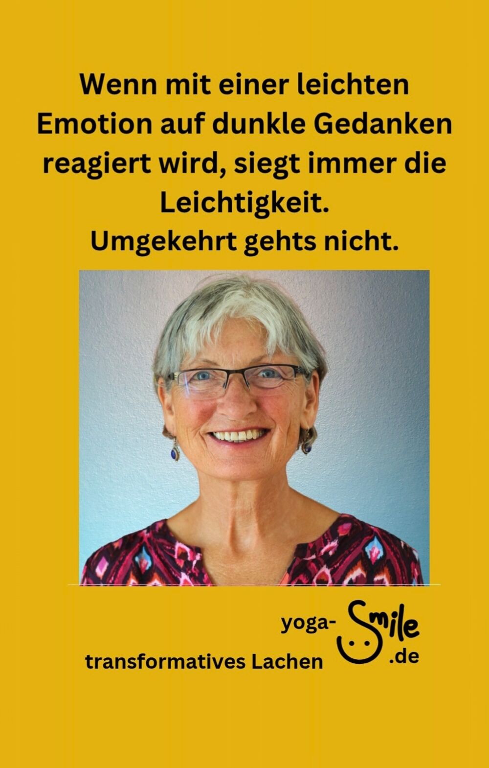 Übrigens: wir praktzieren keine Yogaübungen. Wir erfreuen uns an Lachübungen.