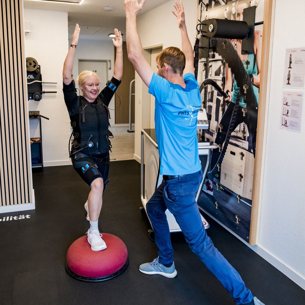 Das 20-minütige Training mit niederfrequentem Reizstrom, unter persönlicher Anleitung eines Physiotherapeuten, kräftigt die Muskulatur, lindert Schmerzen, führt zu einer verbesserten Leistungsfähigkeit und steigert somit die allgemeine Lebensqualität.