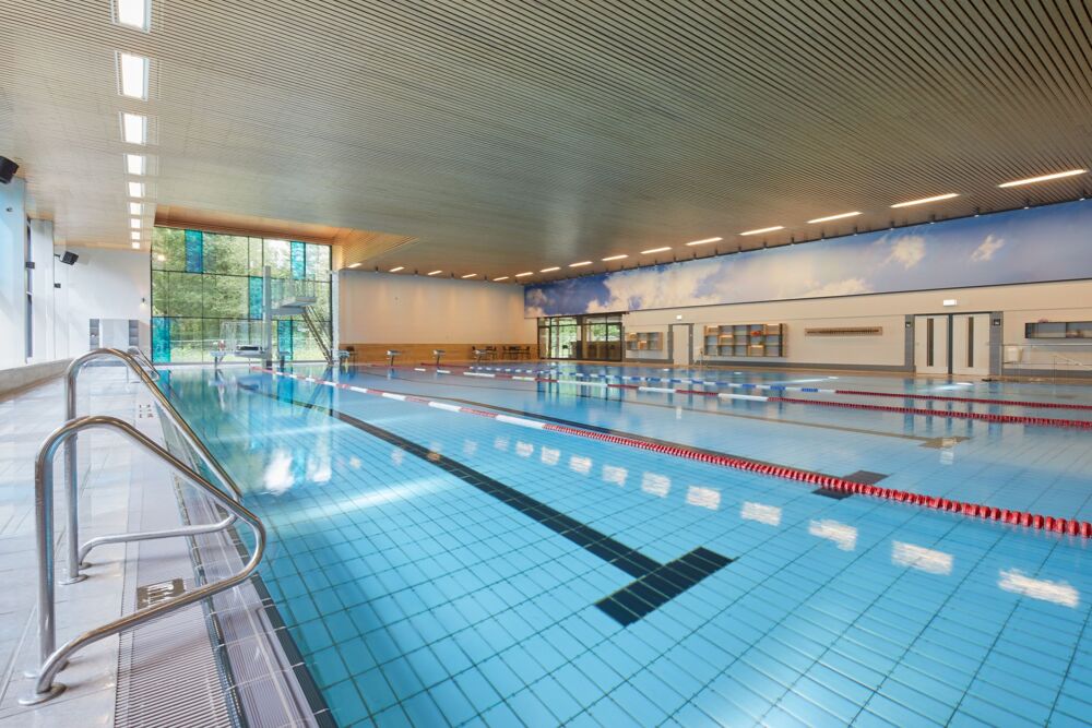 Das Hallenbad Rahlstedt bietet ideale Bedingungen für vielfältige Wasseraktivitäten – ob sportliches Schwimmen oder entspanntes Gleiten im Wasser. Eine große Fensterfront lässt viel Tageslicht herein und eröffnet den Blick ins Grüne. Das 27 °C warme Mehrzweckbecken ist 25 Meter lang, bis zu 3,80 Meter tief und verfügt über sechs Bahnen mit Startblöcken sowie eine Sprunganlage mit 1- und 3-Meter-Brett.