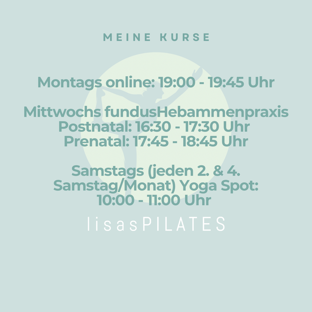 Montags biete ich von 19:00 Uhr bis 19:45 Uhr einen online Kurs an sowie jeden 2. und 4. Samstag im Monat einen Präsenz Kurs.
