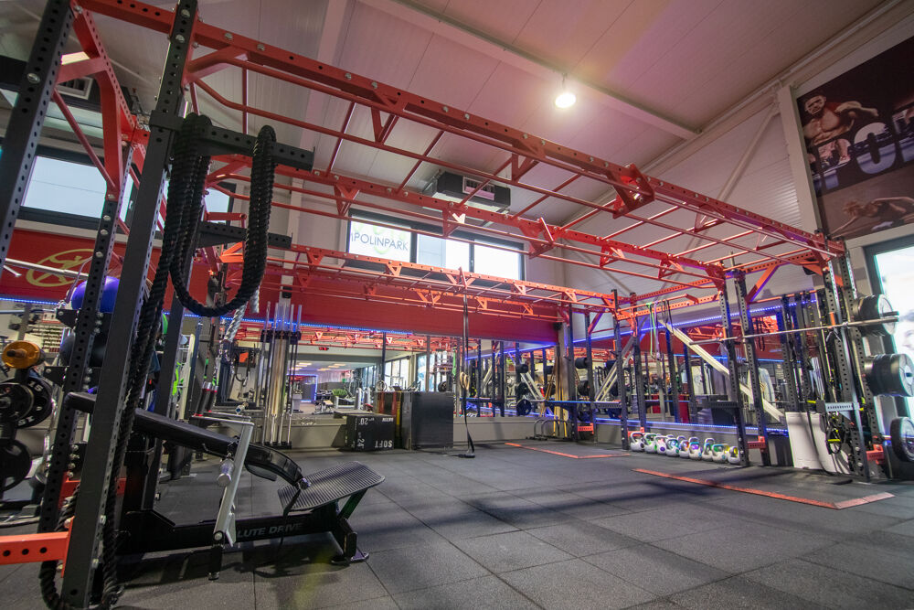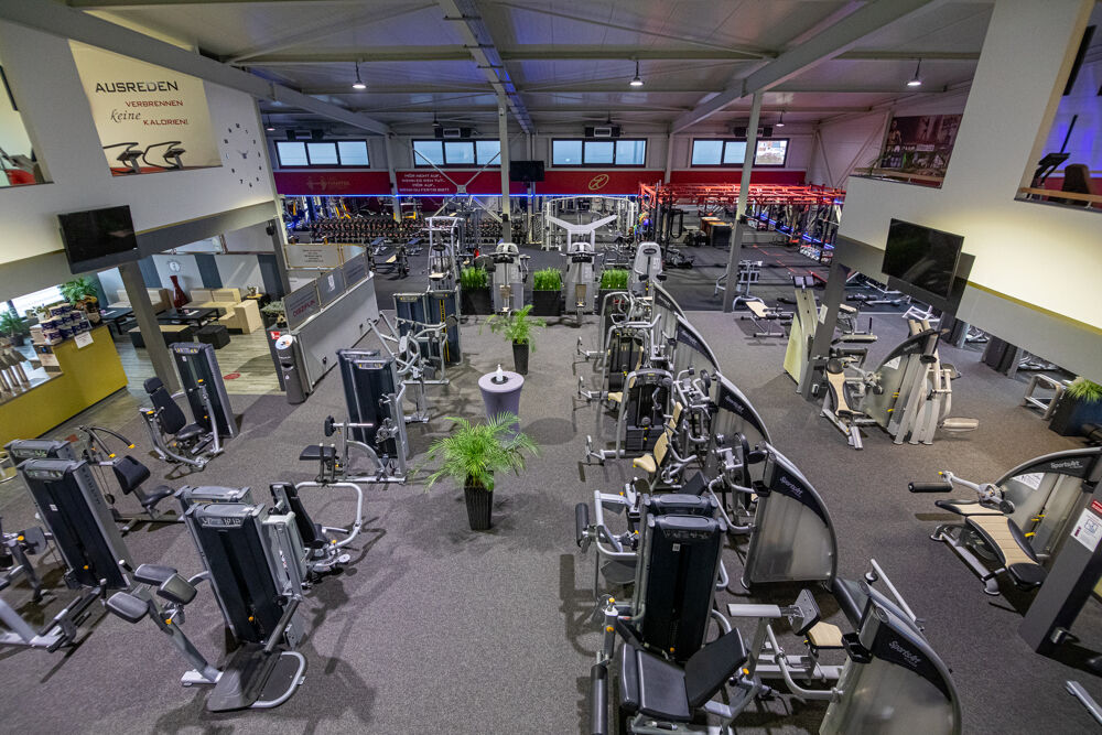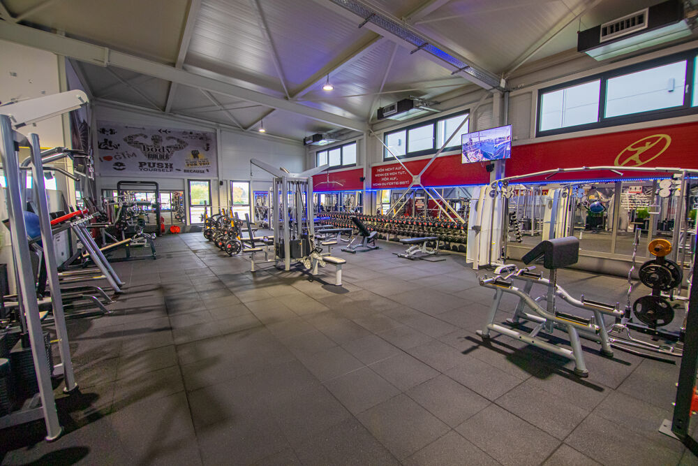 - eine große Trainingsfläche mit vielen Geräten, viel Platz und großzügigen Freihantelbereich