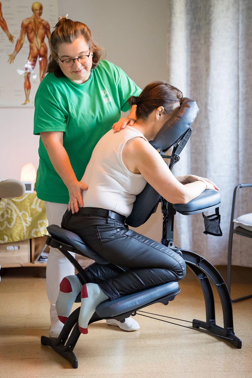 Ein weiteres Angebot von mir ist Massage am Arbeitsplatz (mindestens 6 Massagen) für die Dauer von 20 Minuten auf der Kleidung auf einem speziell entwickelten Massagestuhl (10,00 € Zuzahlung).