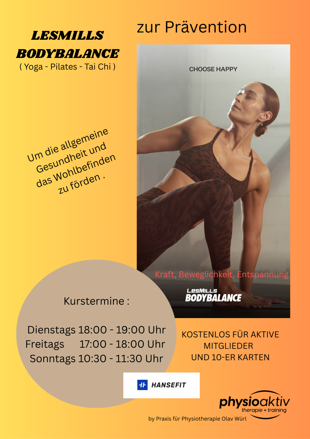 Kurse sind hier im Hause wie Bodybalance und Yoga, sie fördern ihre Beweglichkeit und sorgen für Stabilität ihres Wohlbefindens.