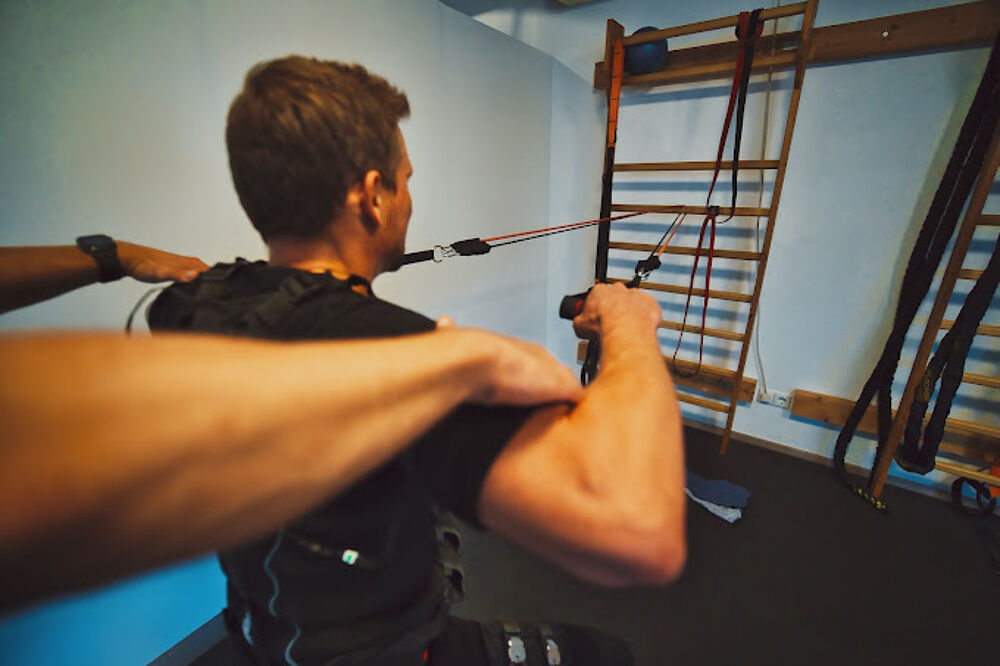 Bei uns im Fitnessstudio erhältst Du durch unser hocheffektives EMS-Training in nur 20 Minuten pro Woche ein intensives und effektives Ganzkörperworkout mit einem geschulten Trainer unter hygienischen Bedingungen. Wir kombinieren das EMS-Training mit funktionellem Krafttraining, HIIT oder auch therapeutischen Übungen. Eine Trainingseinheit findet immer mit einem Personaltrainer und ausschließlich nach Terminvergabe statt – so sorgen wir dafür, dass Du kein Training verpasst und Deine Ziele bestmöglich erreichst.