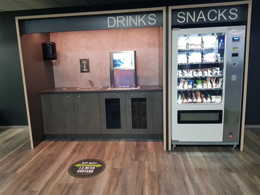 Duschen und eine Getränketheke mit angrenzendem Snackautomat stehen genauso zur Verfügung, wie unser Ergoline Solarium.