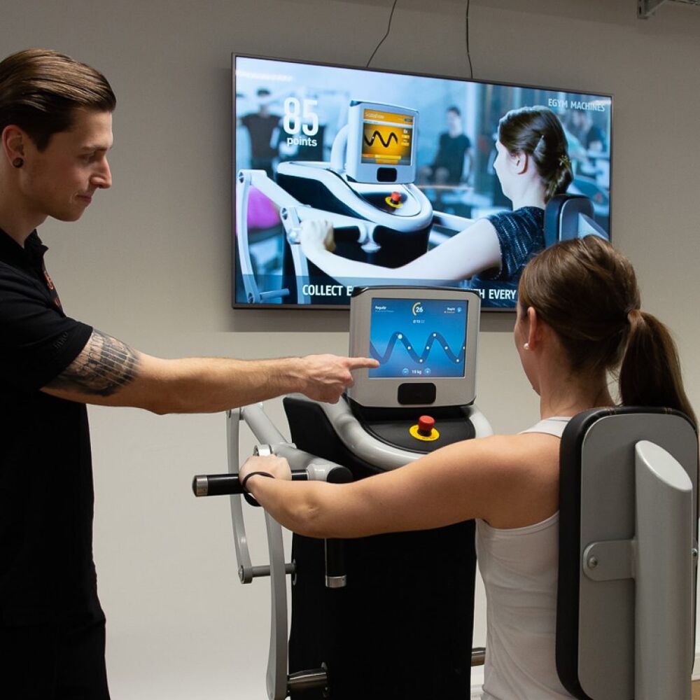 Auf ein tolles, modernes Ambiente, eine super Ausstattung und top Begleitung mit Sporttherapeuten und perfekt ausgebildeten Fitnessinstruktoren, Sportphysios und Sportwissenschaftlern. Trainiere in unserem CROSSWERK – für dein functional Training, dem ultimativen Fitnesstraining. Oder trainiere an unseren eGym Kraft und Flex Geräten für dein persönliches Gesundheits-, Fitness- oder Figurtraining.