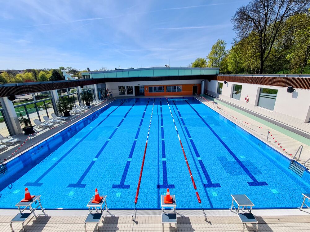 Erleben Sie das einzigartige Badevergnügen, wenn bei entsprechender Witterung das CabrioDach über dem Sportbecken geöffnet und der Blick auf den blauen Himmel freigegeben wird. Hier ziehen auf 25 Metern Schwimmbegeisterte ihre Bahnen. Im Lehrschwimmbecken mit variabler Wassertiefe finden regelmäßig Aqua- und Schwimmkurse statt und für unsere Kleinsten gibt es eine bunte Kinderlandschaft. Unter freiem Himmel lockt ganzjährig das wohlig-warme Solebecken zur salzigen Wassermassage.