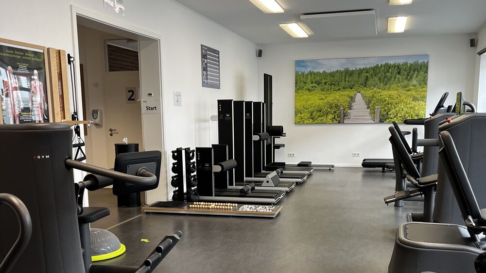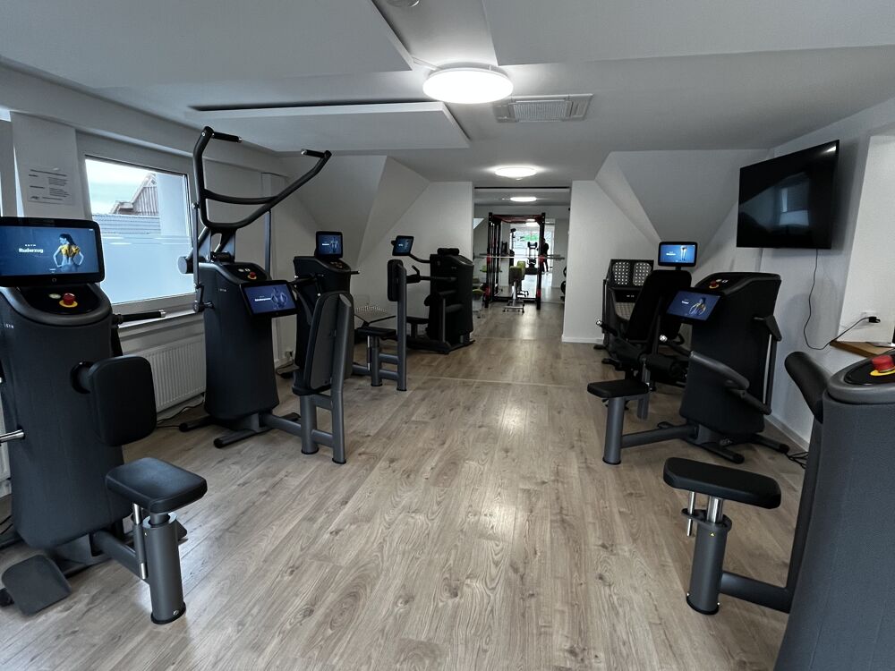Unser Studio vereint moderne Physiotherapie und effektives Fitness-Training unter einem Dach. Auf zwei Trainingsflächen bieten wir sowohl geführtes Zirkeltraining im als auch freies Training mit vielfältigen Möglichkeiten. Im Erdgeschoss findet vor allem das betreute Zirkeltraining an elektronischen Kraft-und Beweglichkeitsgeräten statt.