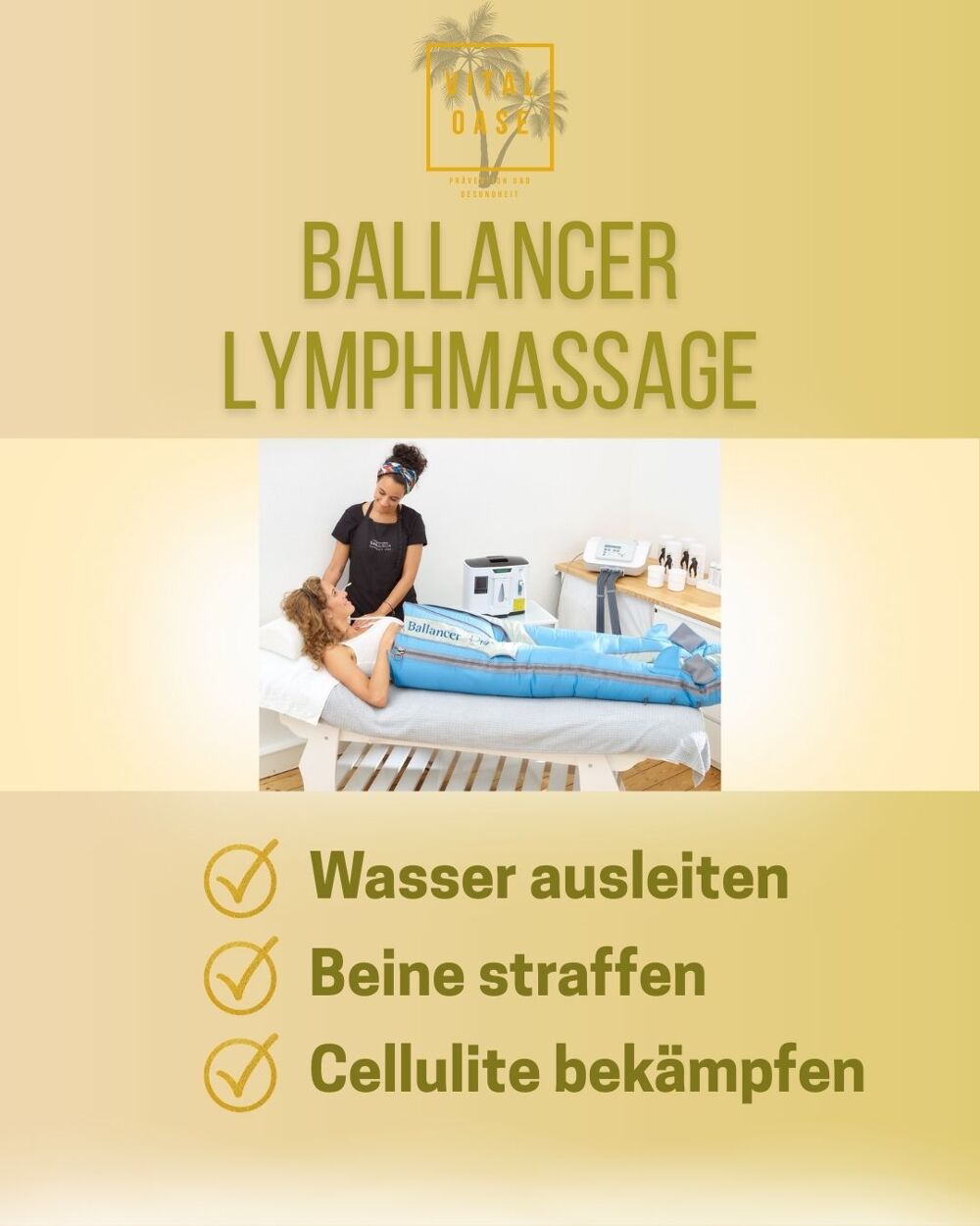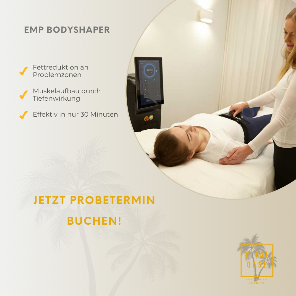Willkommen bei der Vital Oase Salzgitter-Bad. Unsere Mission ist es dafür zu sorgen, dass Sie sich in Ihrem Körper wieder wohl fühlen. Sei es ein Beckenbodentraining mit dem EMP-Chair, eine Lymphmassage mit dem Body Ballancer oder eine Fettreduktion an Ihren Problemstellen mit dem EMP-Bodyshaper, gemeinsam gehen wir Ihre Probleme an.