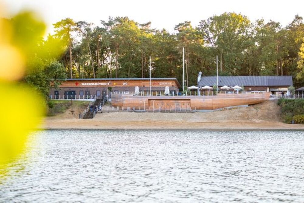 Der Feldmarksee in Sassenberg (NRW) ist ein beliebtes 13 Hektar großes Naherholungsgebiet mit einem bewachten Strandbad, Sandstrand, großer Liegewiese und Tretbootverleih. Der durch Kiesabbau entstandene See bietet zudem Camping, Grillplätze, Gastronomie und einen etwa 2 km langen Rundweg. Hunde sind im Strandbereich verboten.