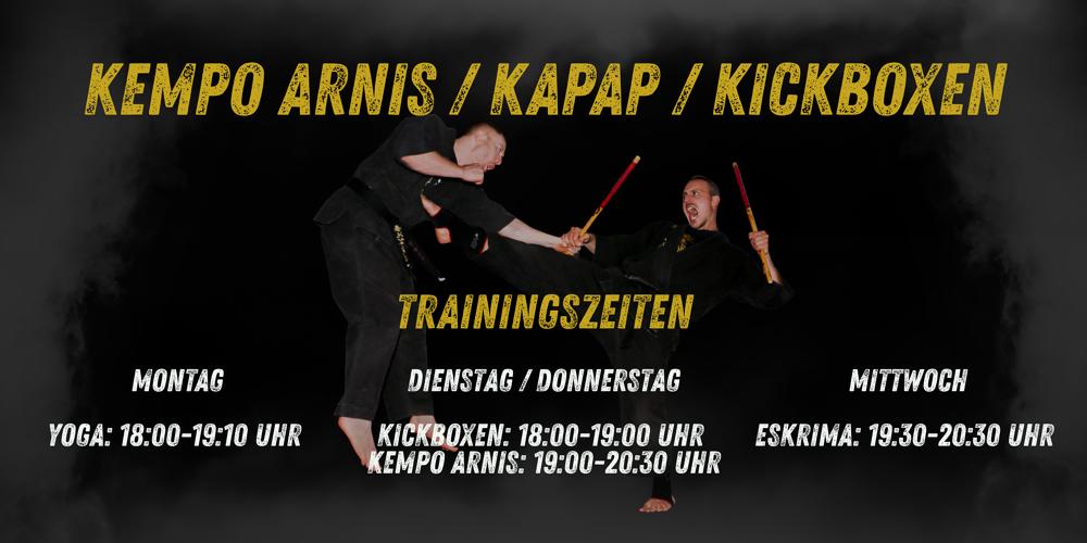 Kempo Arnis eine Mischung aus dem tradionellen Ryukyu Kempo Karate, dem philippinischen Modern Arnis und dem israelischen KAPAP – KRAV MAGA. Diese Kampfkunst bietet ein hervorragend ausgearbeitetes Programm, mit welchem zu Beginn die Selbstverteidigung im Vordergrund steht. Die sehr wirkungsvollen Techniken können schnell erlernt werden und bieten eine optimale Plattform für Zivilisten, Einsatzkräfte der Polizei, Security und dem Militär. Zu Beginn steht die unbewaffnete Anwedung im Vordergrund. Später wird diese durch den Einsatz von Waffen ergänzt und in allen Bereichen kombiniert. In den nachfolgenden Levels werden die Kampftechniken immer weiter ausgebaut und technisch anspruchsvoller. Durch stetiges Üben des Freikampfes (bis zu Vollkontakt), wird dynamisch die Schlagtechnik gefördert. Desweiteren werden Anwendungen aus den Katas und dem SV- Bereich mit dem Fitnesstraining kombiniert.
