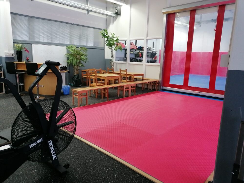 Unser Dojo bietet hierzu den perfekten Rahmen. Wir verfügen über einen Aufenthaltsbereich, eine Corssfitarea sowie über 100qm Mattenfläche. Umkleidemöglichkeit ist gegeben, WC ist vorhanden.