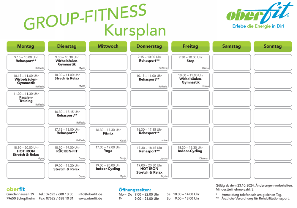 - Präventions- / Rehakurse
