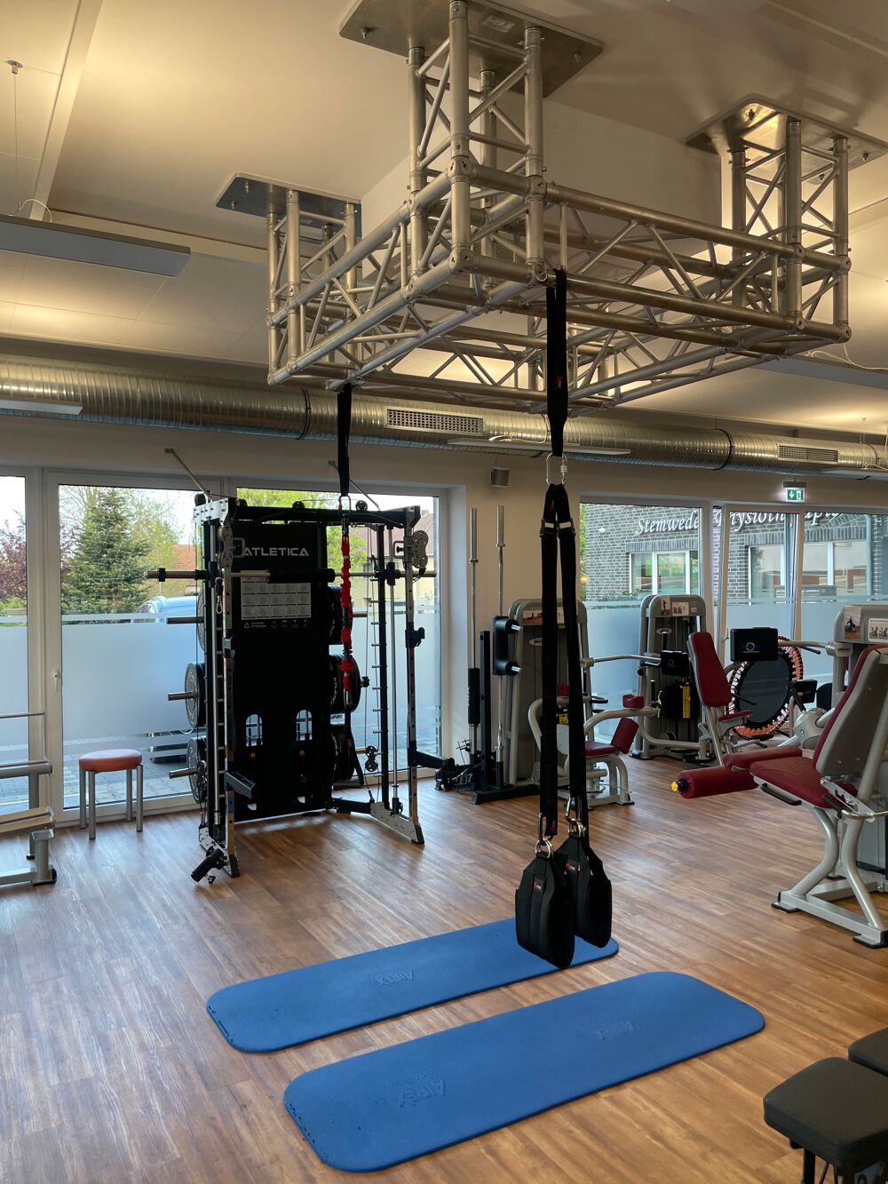 Neben der Physiotherapie verfügt die Praxis über einen medizinisch geführten Gerätebereich- sowie zwei großzügige Kursräume, in denen verschiedene Sportangebote stattfinden.