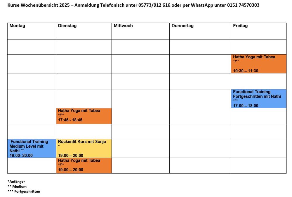 - Unsere wöchentliche Kursübersicht finden Sie in der Bildergalerie