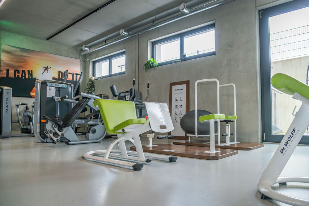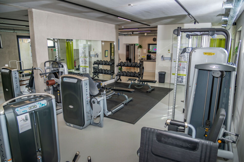 ausgestattet mit namhaften Cardio Geräten & Dehnungszirkel von Dr. Wolff, Kraftgeräte, ein Milon Zirkel sowie ein Freihantelbereich zu finden. Wir bieten eine Getränkeflat an, separate Duschen und Umkleiden sind ebenfalls kostenlos. Kurse dürfen mit jeweils 50% Zuschuss vom Kurspreis gebucht werden + Scan der App vor jeder Kursstunde.