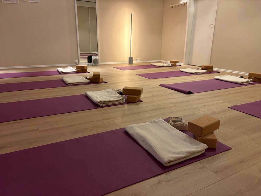 Bringe gerne deine eigene Matte mit, oder nutze die Studiomatten kostenfrei. Yoga übt sich am besten barfuß und mit leeren Magen. In der kalten Jahreszeit gerne etwas wärmere Kleidung mitbringen und warme Wollsocken.
