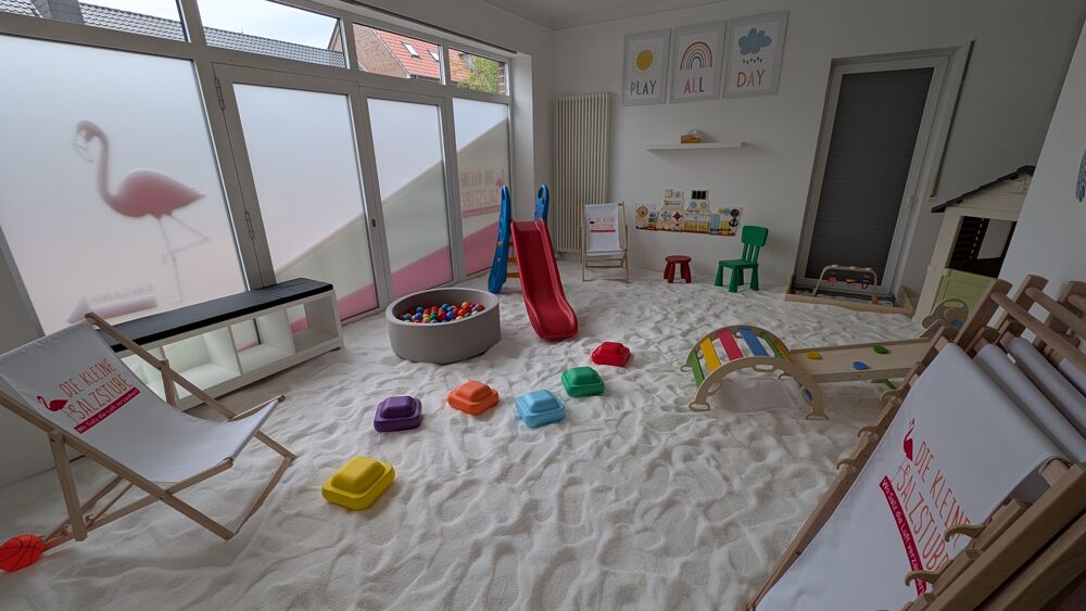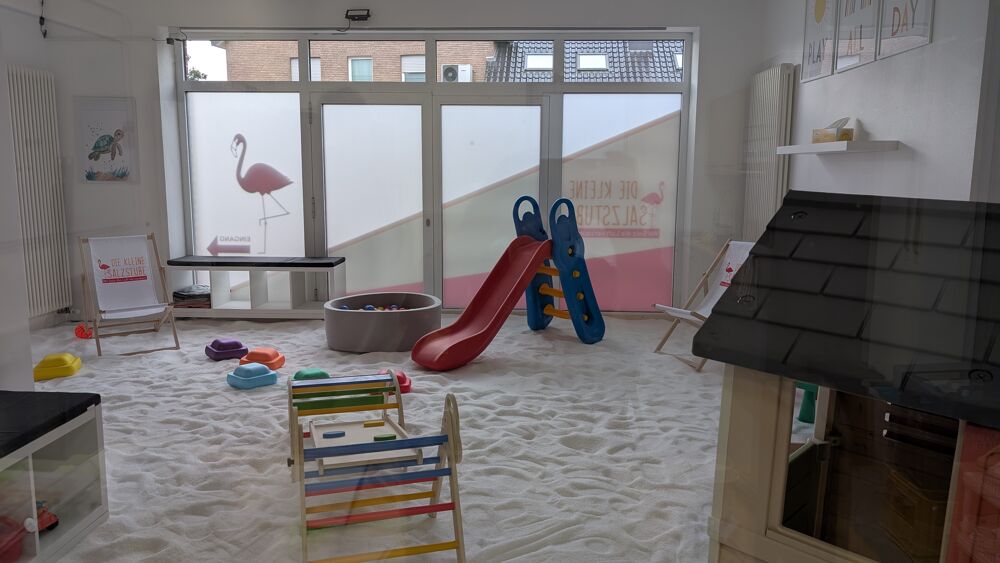 Die kleine Salzstube ist ein für Kinder entwickelter Salzspielplatz(tagsüber für Familien und am Abend für die Erwachsenen).Die Kinder fühlen sich wie am Strand, nur das der Boden nicht mit Sand, sondern mit Salz bedeckt ist.Mit einem speziellen Sole-Vernebler wird der Salzraum mit Salzsole vernebelt. Die feinen Salzpartikel können so bis tief in die Lunge gelangen.Somit kann die Inhalation die Linderung von Erkältungen, Husten, Schnupfen, Asthma, Bronchitis, Allergien, Neurodermitis, Ohrenentzündung, Heuschnupfen uvm. lindern.Eine Sitzung dauert 45 Minuten.Das ganze soll natürlich nicht nur für die kleinen sein.Deswegen bieten wir 2 mal die Woche am Abend Sitzungen für Erwachsene an.Dann wird der Salzspielplatz ein Ort zum entspannen und gesund werden.Im Salzraum gibt es kostenlos Wasser.
