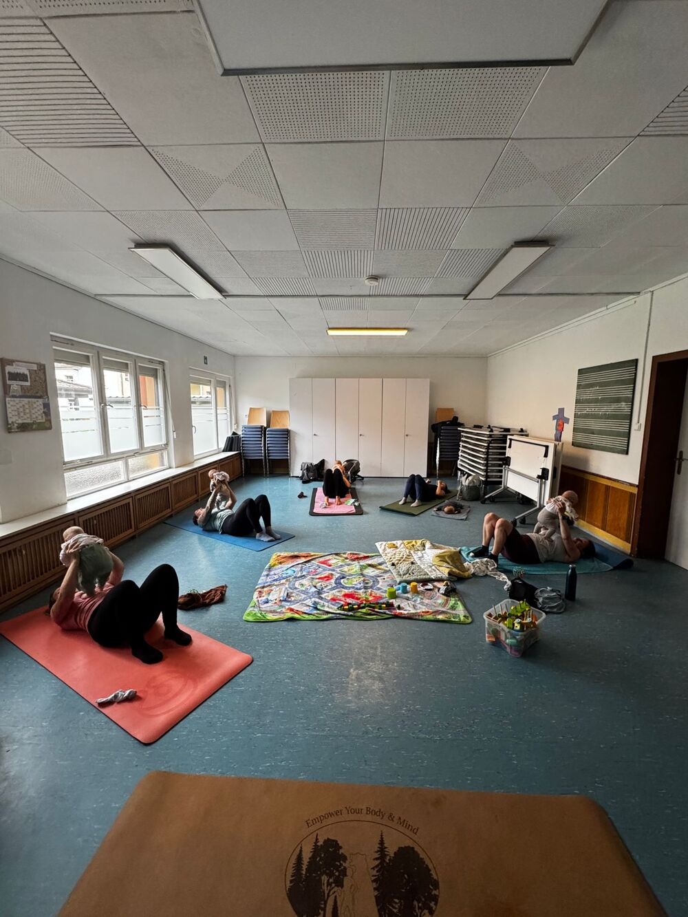 Hier geht es darum gemeinsam wieder fit zu werden, den ganzen Körper inklusive des Beckenbodens zu stärken und sich zu entspannen.