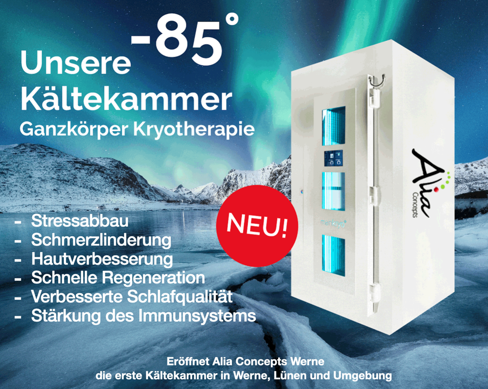 Nutze auch unser Kältekammer-Angebot: Bei -85 Grad lindert es Entzündungen, verbessert deinen Schlaf und fördert die Regeneration.