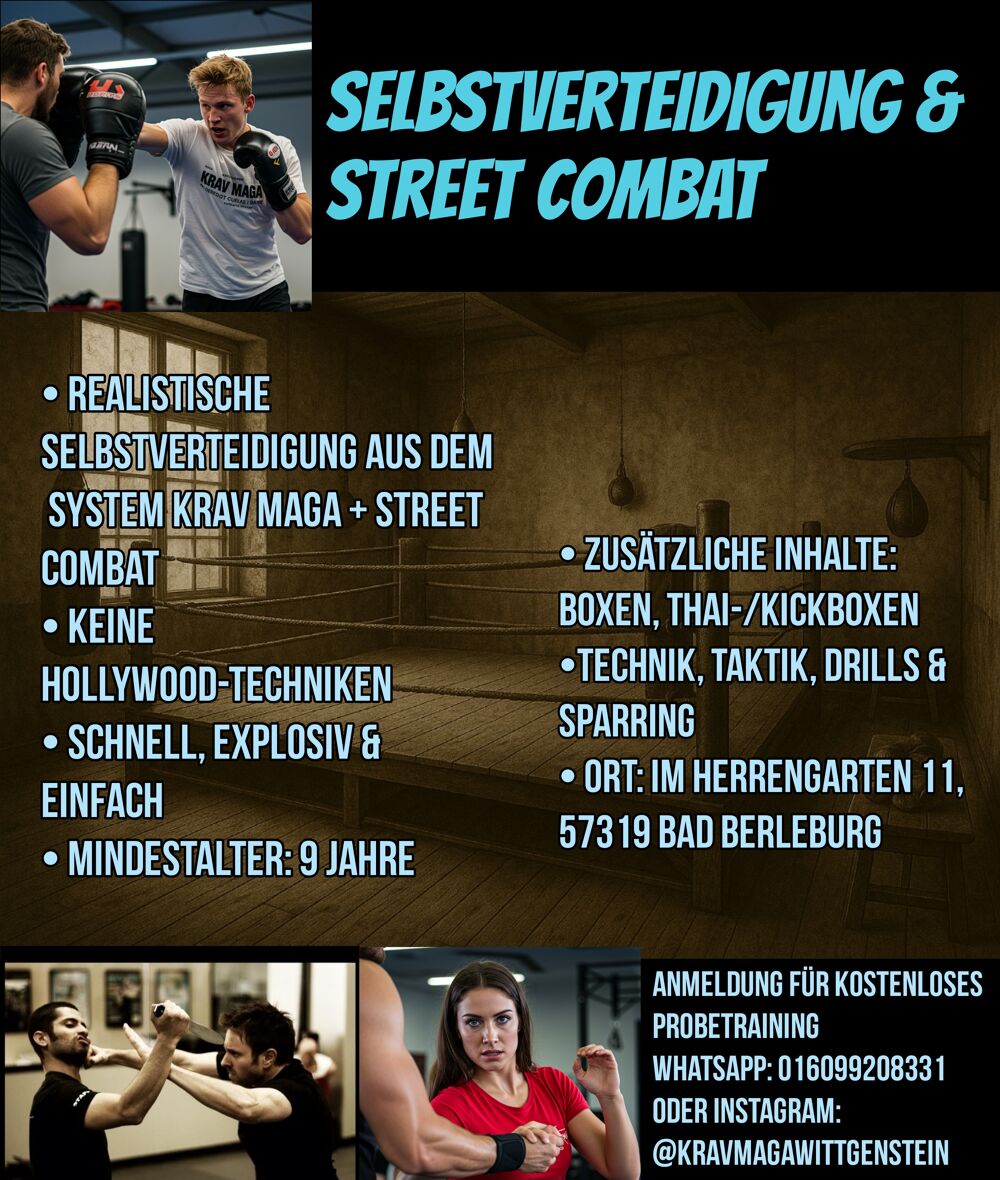 Street Combat Krav Maga is a realistic, explosive self-defense system, which consists mainly of punching and kicking techniques, but also includes release techniques, throws, levers, ground fighting and weapon defense.