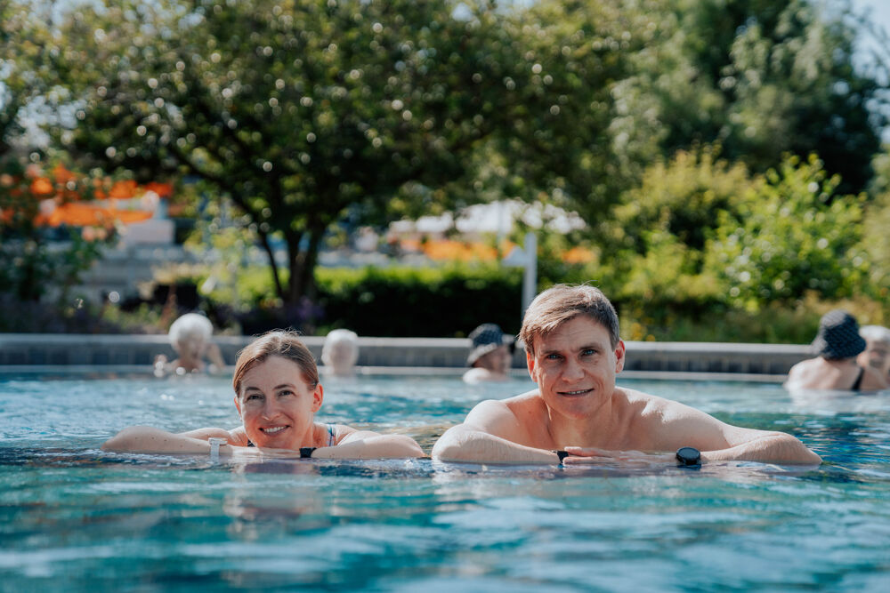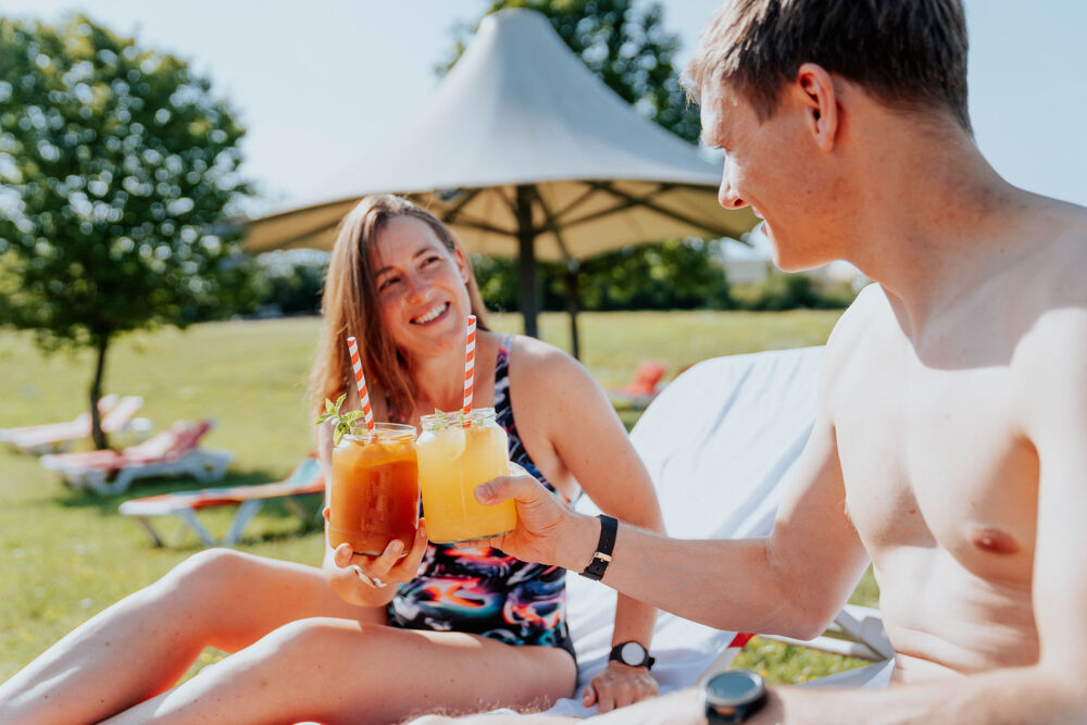 Our ThermeNatur offers more than 1,000 wonderful square meters of water to recharge your batteries in the midst of green surroundings. Enjoy soothing thermal baths with natural healing water, hot infusions in our premium sauna world "Erdfeuer", as well as extensive wellness activities.