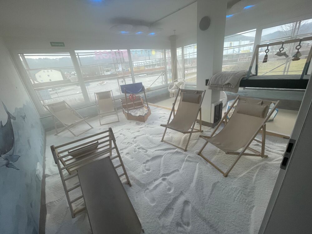 Experience the soothing power of salt in our unique salt room measuring approx. 50 square meters! We offer you a special inhalation and play paradise for children and adults. Immerse yourself in a world full of relaxation and the positive health benefits that salt can offer. In our salt room, the air is nebulized with 14% brine using a salt generator.