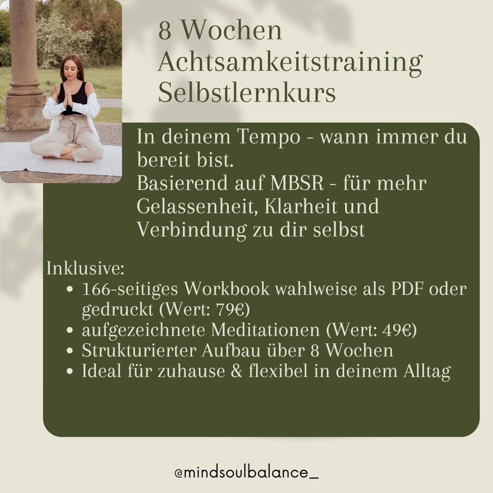 - 1:1 mindfulness training according to MBSR with spiritual impulses