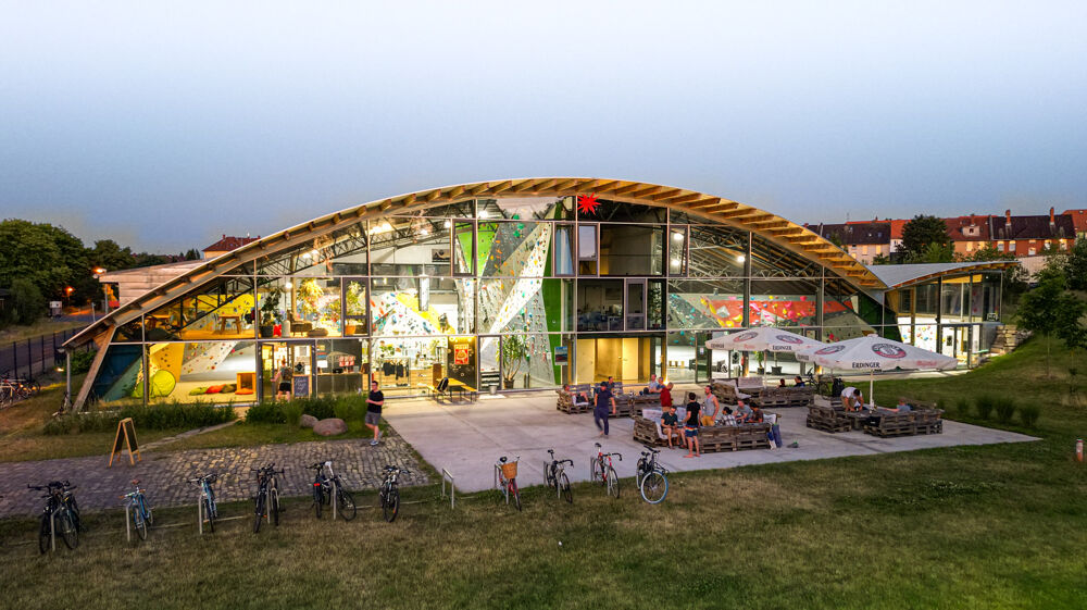 Included is climbing in the hall and at the bouldering mushrooms in the outdoor area.