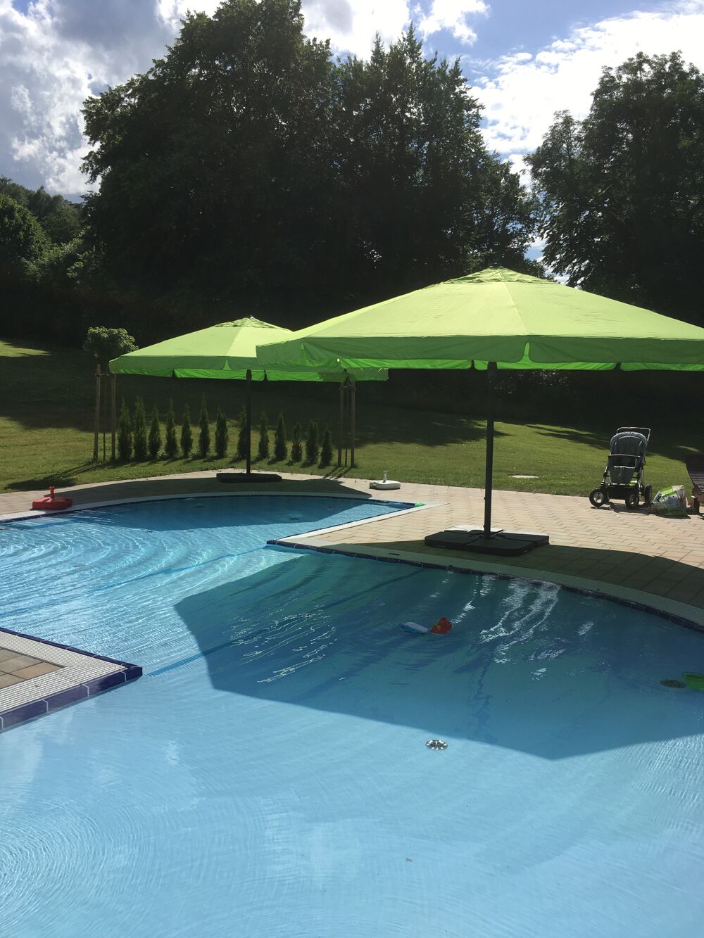 We use these funds to finance the operation of the pool, the staff, the water treatment - with which we offer mineral water quality - and the maintenance of our park-like outdoor pool with 9,900 m² of sunbathing lawn, 2,000 m² of parking area and 1,200 m² of water surface. This is divided into a newly constructed baby pool, a non-swimmer's pool and a 50 m swimming pool with diving platform.