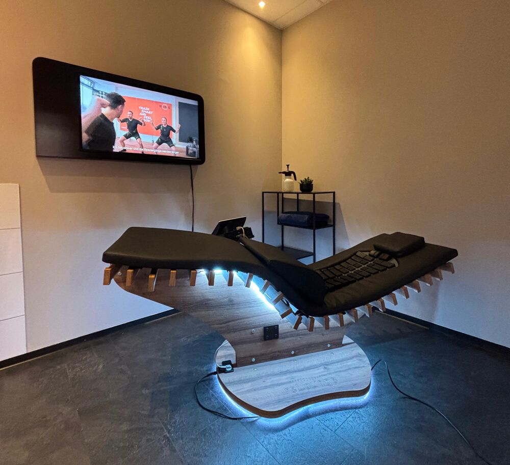 On our EMS couch, you can strengthen your back while lying down, relieve muscular imbalances and tension and relax deeply at the same time.