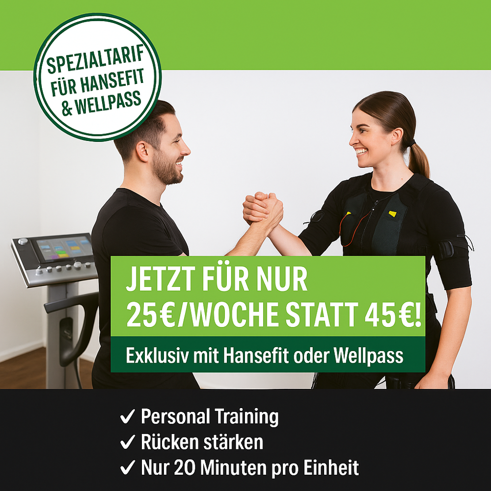 Don't fancy long waiting times and hours of strength training? Do you lack the motivation to train? Here's the solution: fitbox Herten Disteln offers you a fixed appointment with a personal trainer. Thanks to the effectiveness of EMS, your fitness training only takes 20 minutes. Your personal trainer will guide you through all the exercises and give you the best advice. We train strength once a week and cardio once a week. The fitbox Herten Disteln offers fast and effective personal fitness training. We will find a solution for all your fitness problems.