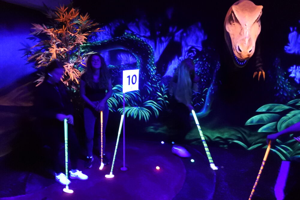 Experience fantastic black light worlds and enjoy our 18-hole mini golf course.