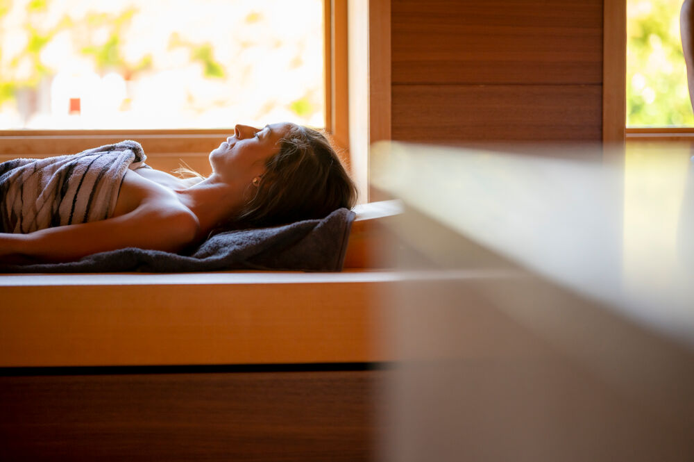 Experience soothing warmth and relaxation in our modern sauna area.
