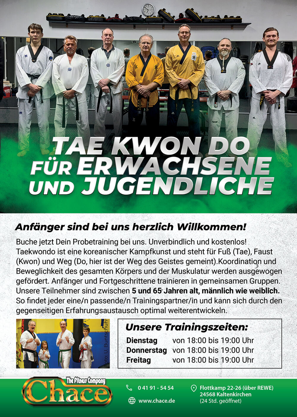 You are also welcome to contact us by telephone on 04191-5454 or by e-mail (info@chace.de) for further information. Or best of all, you can just drop by our training sessions.