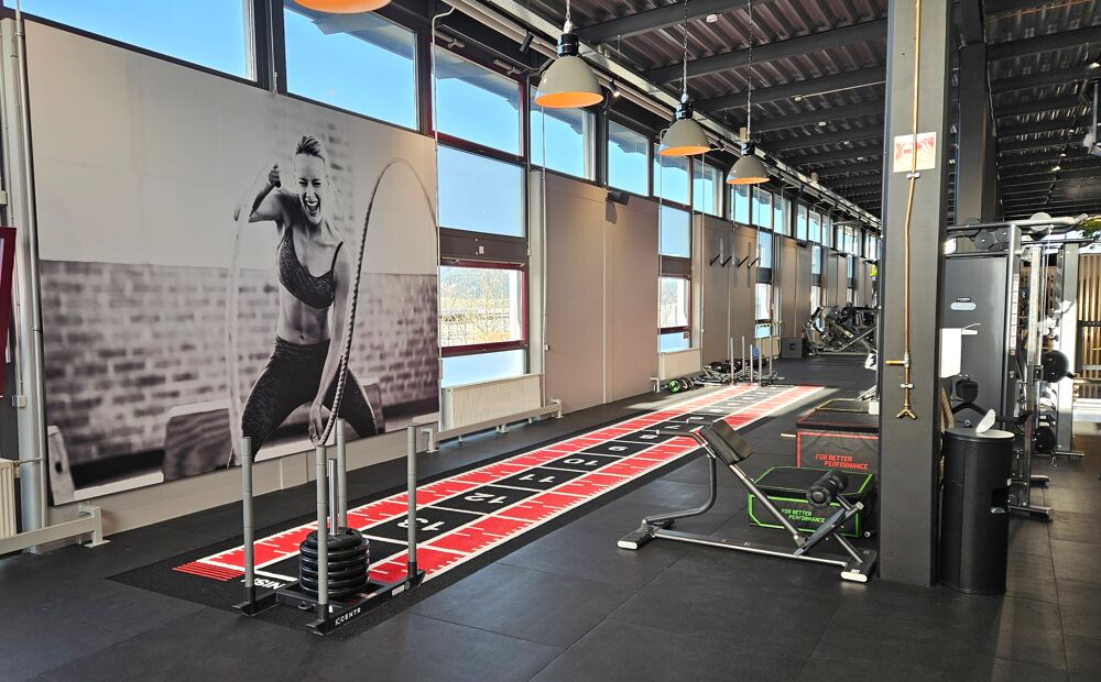 Ladies area, plate-loaded training equipment, Hyrox Training Center HTC, free weights zone, WLAN, water dispenser, parking spaces, changing rooms, shower areas