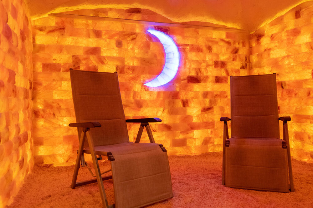 In the salt oasis you can breathe deeply. In a 25-minute session, you breathe brine-containing air that cleanses the lungs. You can recharge with soft relaxing music in a relaxing ambience.