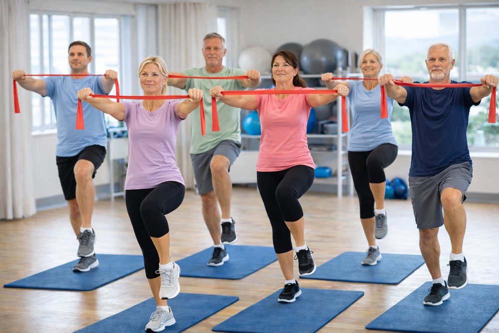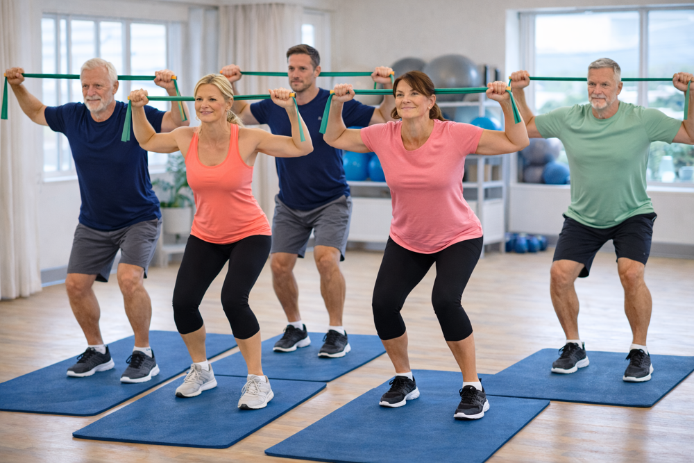 Alternating courses in back health, full-body training, functional training and Pilates. Some in combination with therabands/fitness bands. Focus on health and prevention.