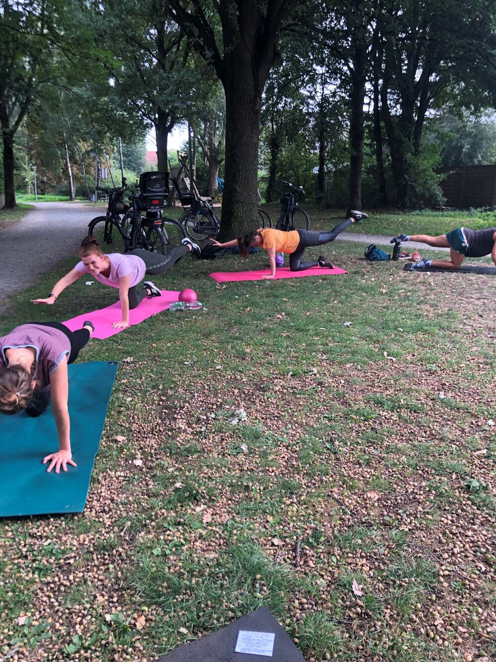 We offer sports in the park in the fresh air for all moms- and dads. Whether only in the future (Ganz-Schön-Schwanger), with a small drop in the stroller (KiWa course) or more challenging for mothers with older children - who can then already stay at home :) (WOMEN'S POWER). This course is for ALL women, so being a mom is not a prerequisite ;) We want to move and be physically prepared for all outrages. A reward in the (mama) everyday life, a time out with exchange. In (almost) any weather, we meet outside and release the endorphins to let the little ones rule the day again with a smile (and maybe some sore muscles)."