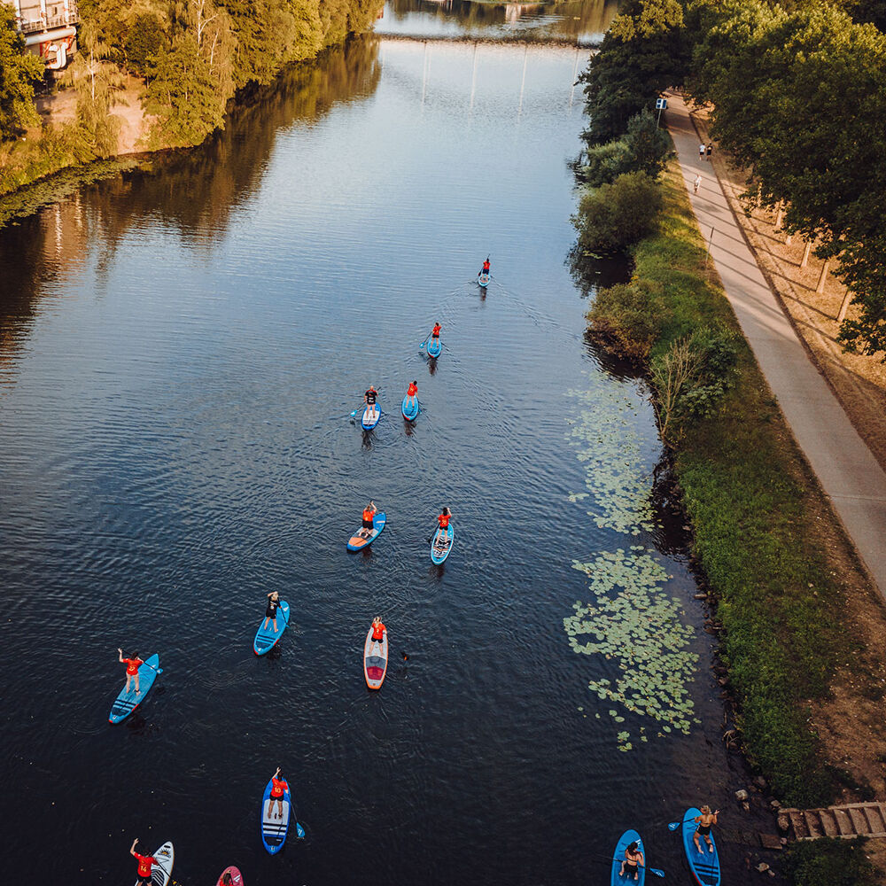 We always have enough boards in stock, you can just come by and paddle, for groups you can also pre-reserve SUPs at our rental station for a specific time, just use our reservation form below. For short-term reservations on the same day please call the following phone number: 0174-3451621.