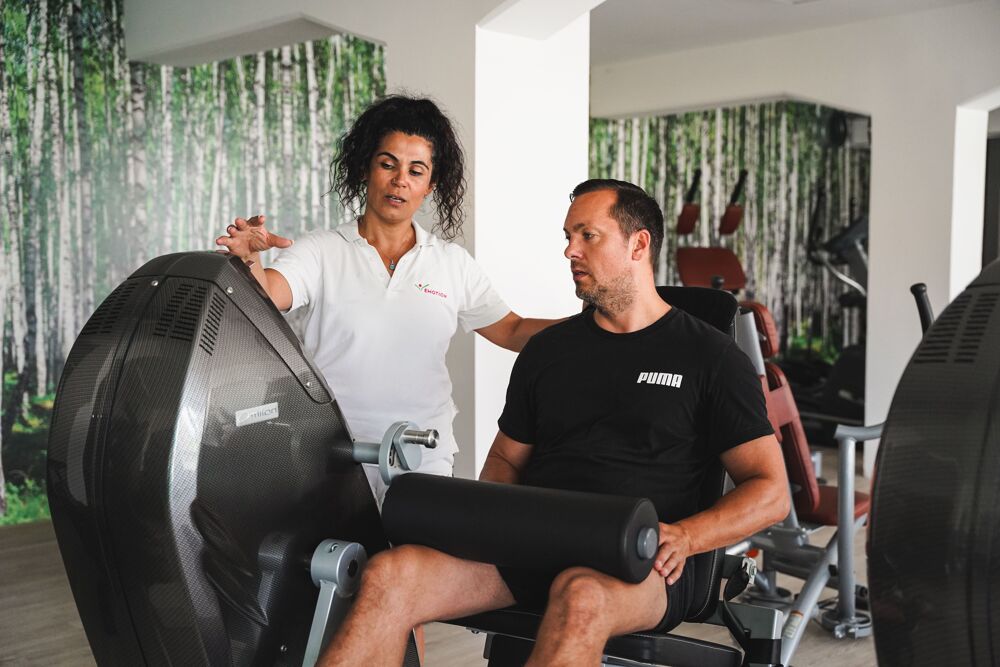 We offer on 2. floors,, cardio training, strength training, hydraulic circuit training, chip-controlled strength and endurance training, vibration training, courses, hydrojet massage couch, Kurodo massage chair with various massage programs, Ballancer lymphatic massages, Extrafit stretching and fascia circuit in beautiful light-flooded rooms. You can also relax in our sauna with a rest area and outdoor terrace after your workout. As a health provider, we also offer rehabilitation sports courses and prevention courses according to §20, which are reimbursed by health insurance companies up to 100%.