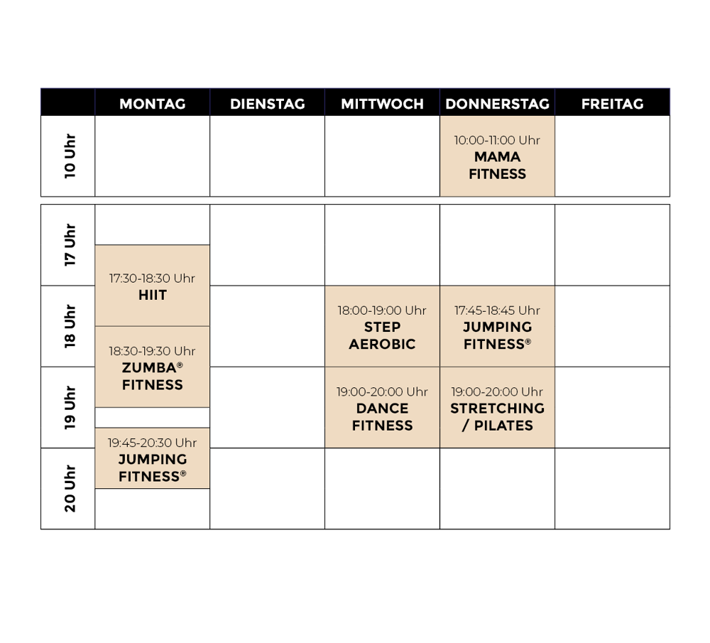 I offer a wide range of fitness courses in modern classrooms in Möhringen near Tuttlingen. Whether trendy courses like Hula Hoop, HIIT and Jumping Fitness® or long-running favorites like ZUMBA® Fitness , Stretching and Mama Fitness, the course program covers everything that today's modern fitness movement entails. My program is completed with my own creation Dance Fitness, which combines classic fitness exercises with challenging movements from dance and ballet.