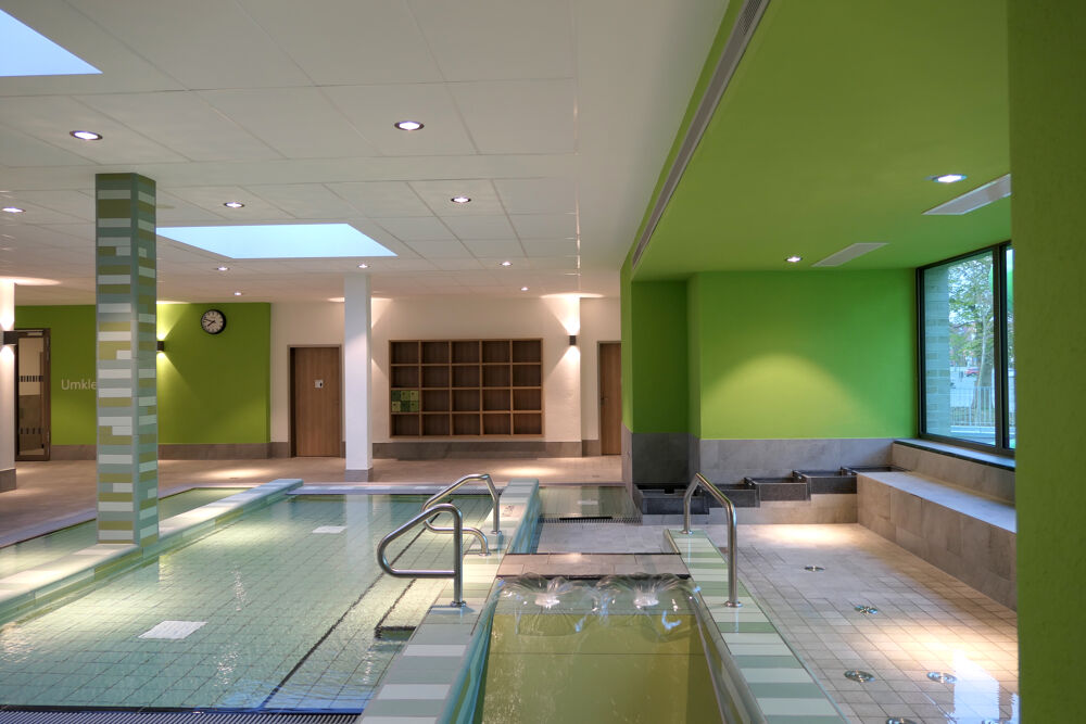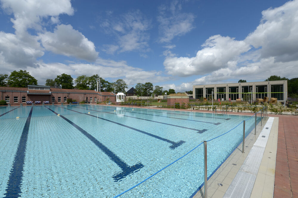 The brine pool in Werne is a leisure pool with a wide range of bathing facilities and an attractive brine area. The year-round outdoor brine pool with 6% brine content, 33°C and over 560m² of water is the largest in the region. In addition to a Finnish textile sauna and a textile steam bath, there is also a relaxation room, a fireplace room, a brine lounge and a winter garden to relax in. In summer, the offer is supplemented by a spacious outdoor pool area with a 50-meter sports pool. The indoor pool has a 25-metre sports pool with diving facility, an 80-metre slide with timer and a multifunctional pool as well as a children's area.